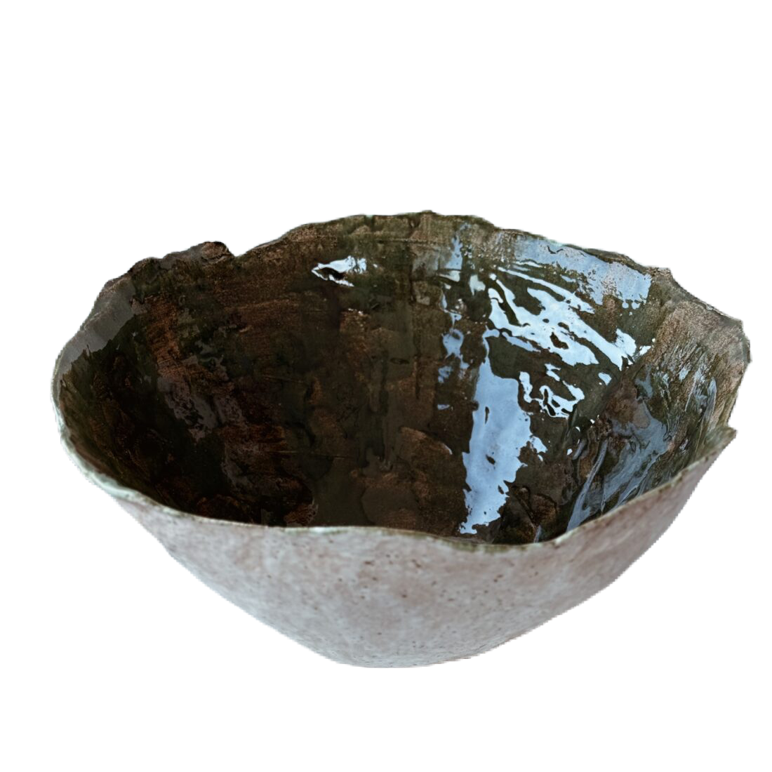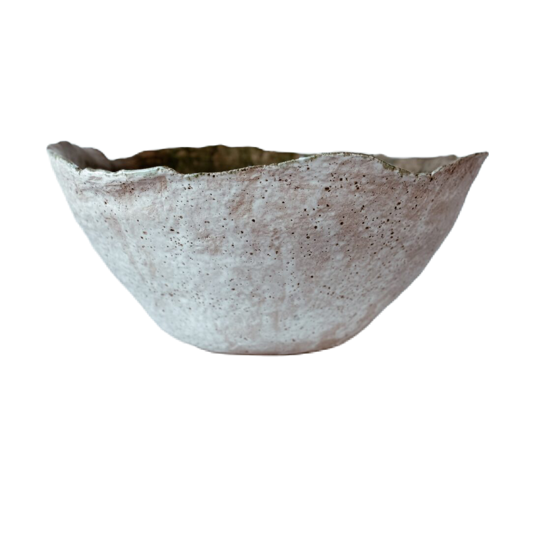 Obiekt wykonany z białej gliny, szkliwiony na zewnątrz i we wnętrz. Zewnętrzna ściana obiektu ze strukturą w jasnej kolorystyce w matowym wykończeniu. Wnętrze w zieleni i różnych odcieniach, w wykończeniu na wysoki połysk.