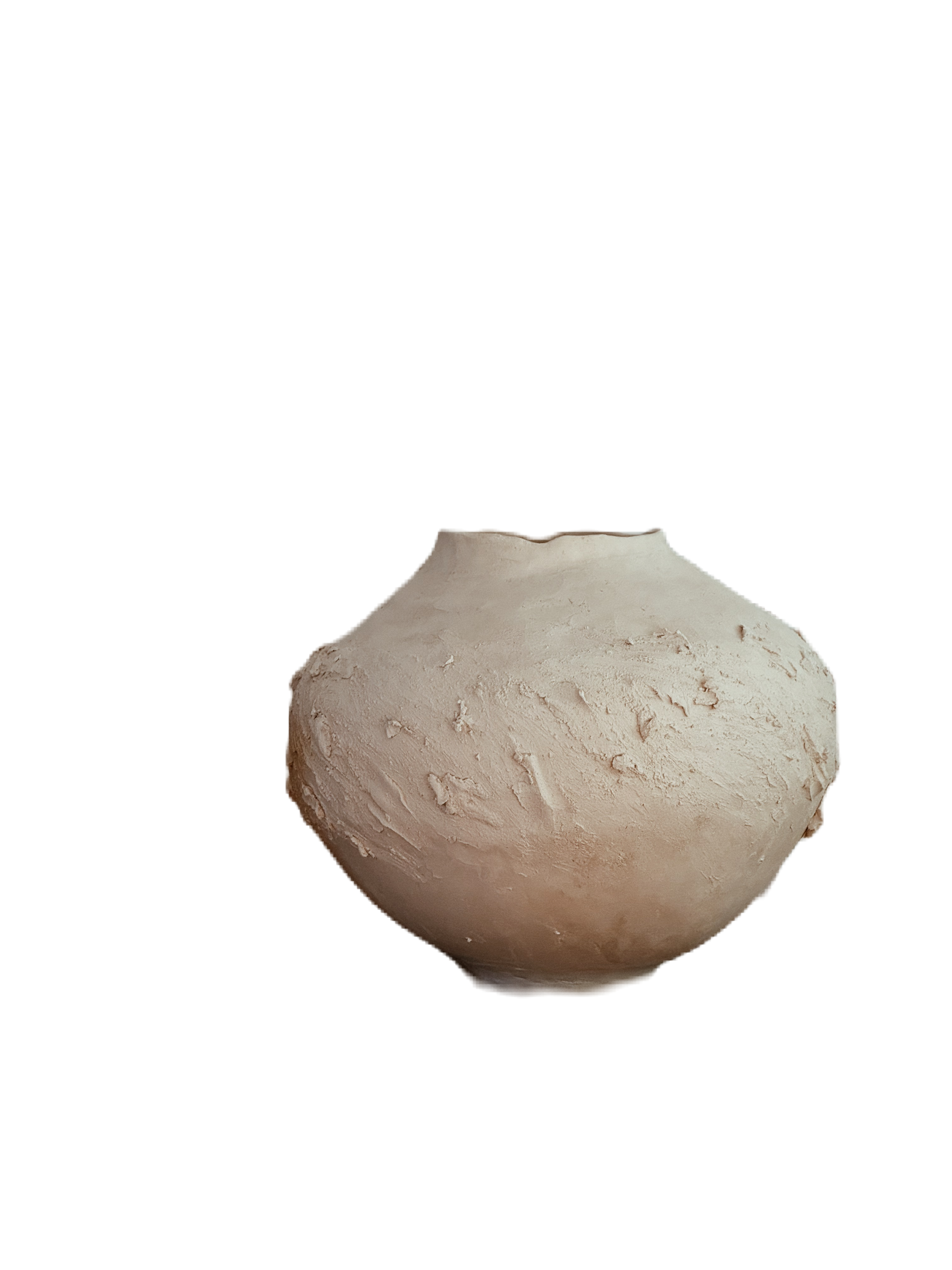Obiekt  wykonany ręcznie z białej gliny,  nieszkliwiony, z wyraźną fakturą na ściankach.